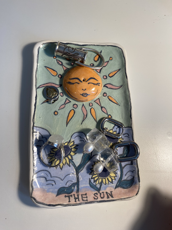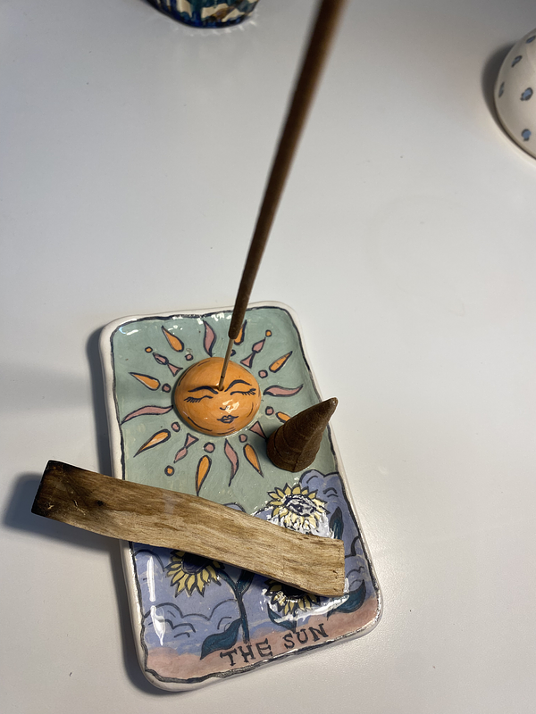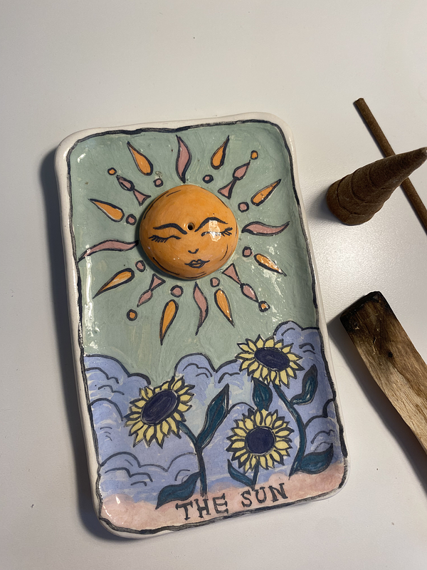 Керамическая карта таро "Солнце" может служить подставкой под благовония/аксессуары или быть украшением интерьера и даже талисманом.