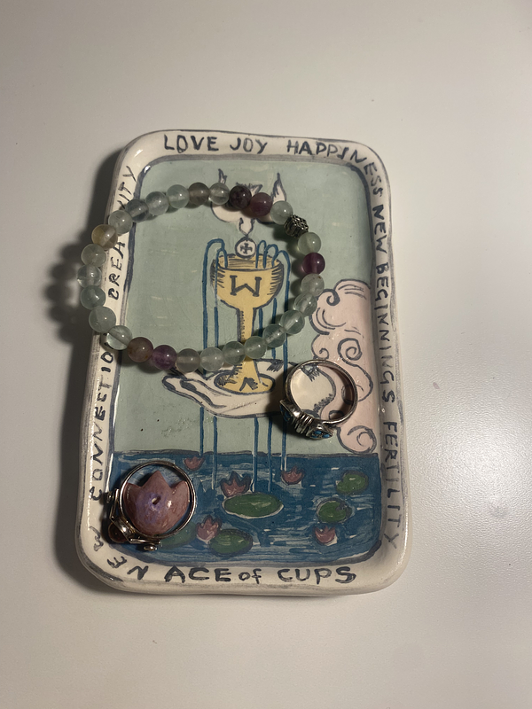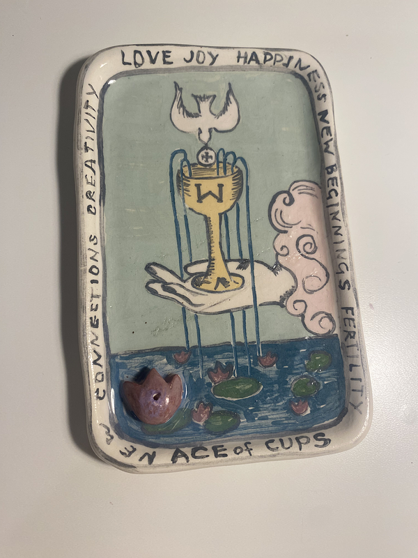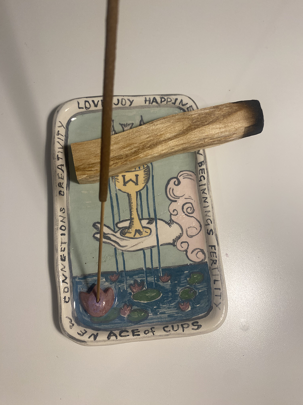 Керамическая карта таро "Туз Кубков" может служить подставкой под благовония/аксессуары или быть украшением интерьера и даже талисманом.