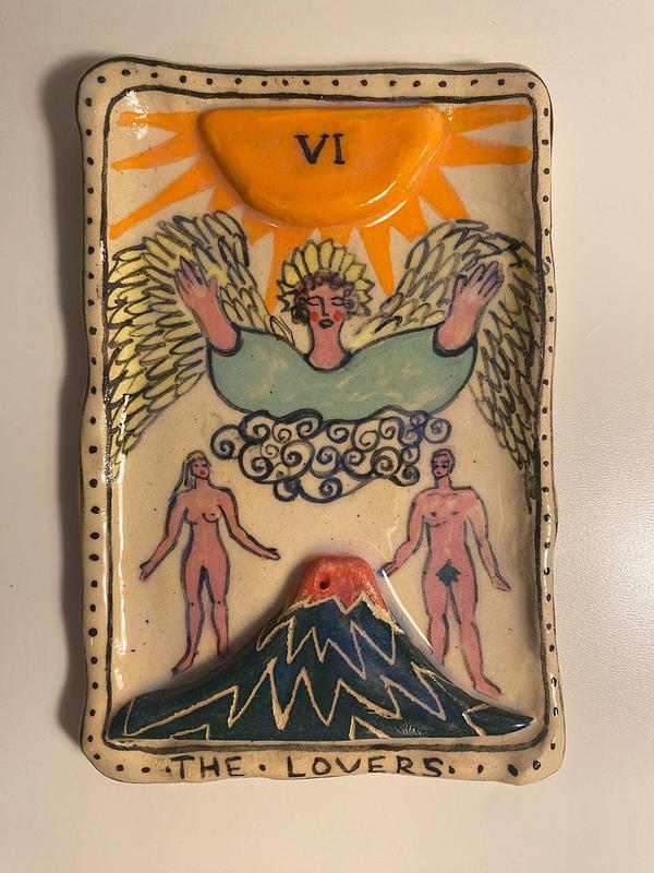 Керамическая карта таро "Влюбленные" может служить подставкой под благовония/аксессуары или быть украшением интерьера и даже талисманом.